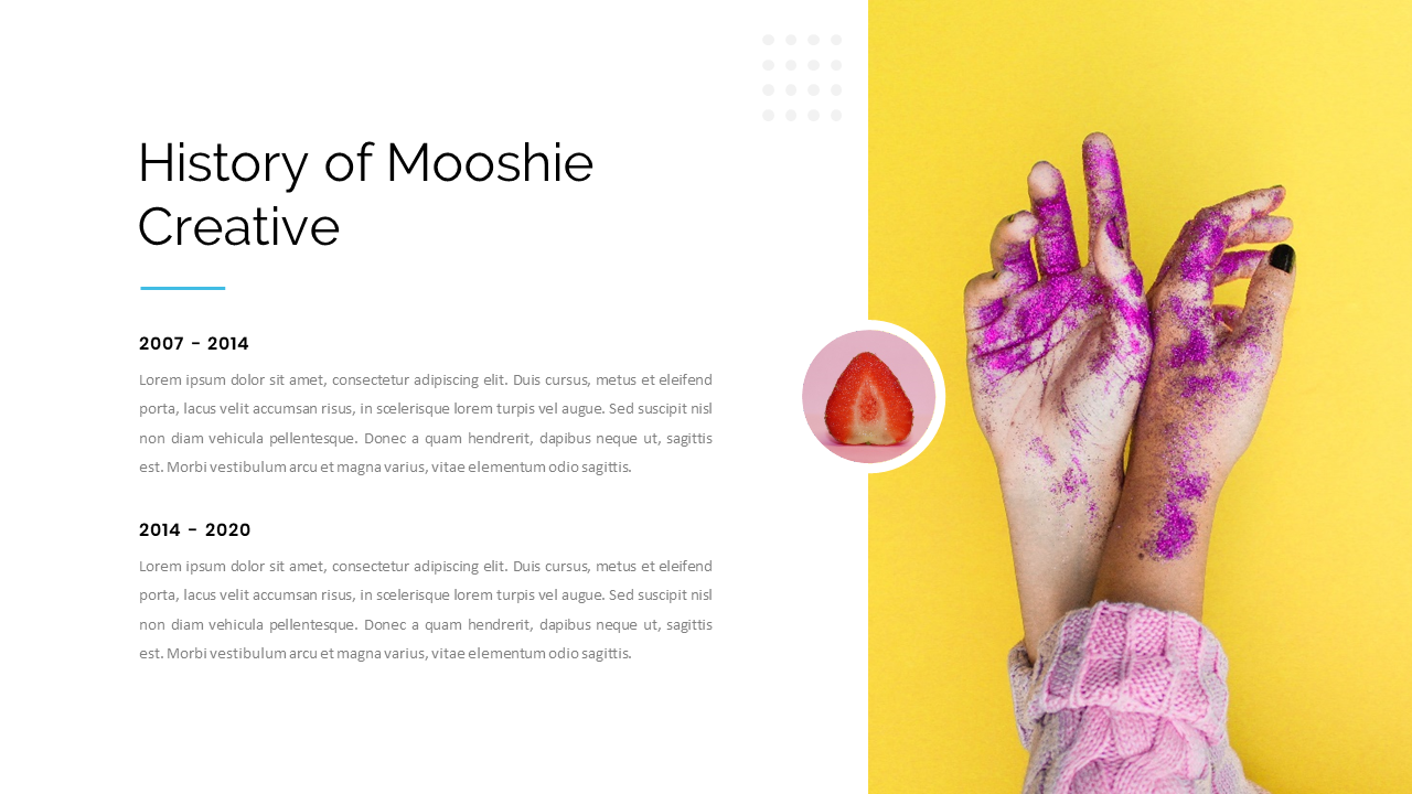 Introducing "Mooshie - Pop Art & Creative Business Presentation Template". This Presentation Template can be used for a variety of purposes, such as: Creative Agency, Portfolio, Photography, Company Profile, Startup, Pitch Deck, and also can be used for a Personal Portfolio.