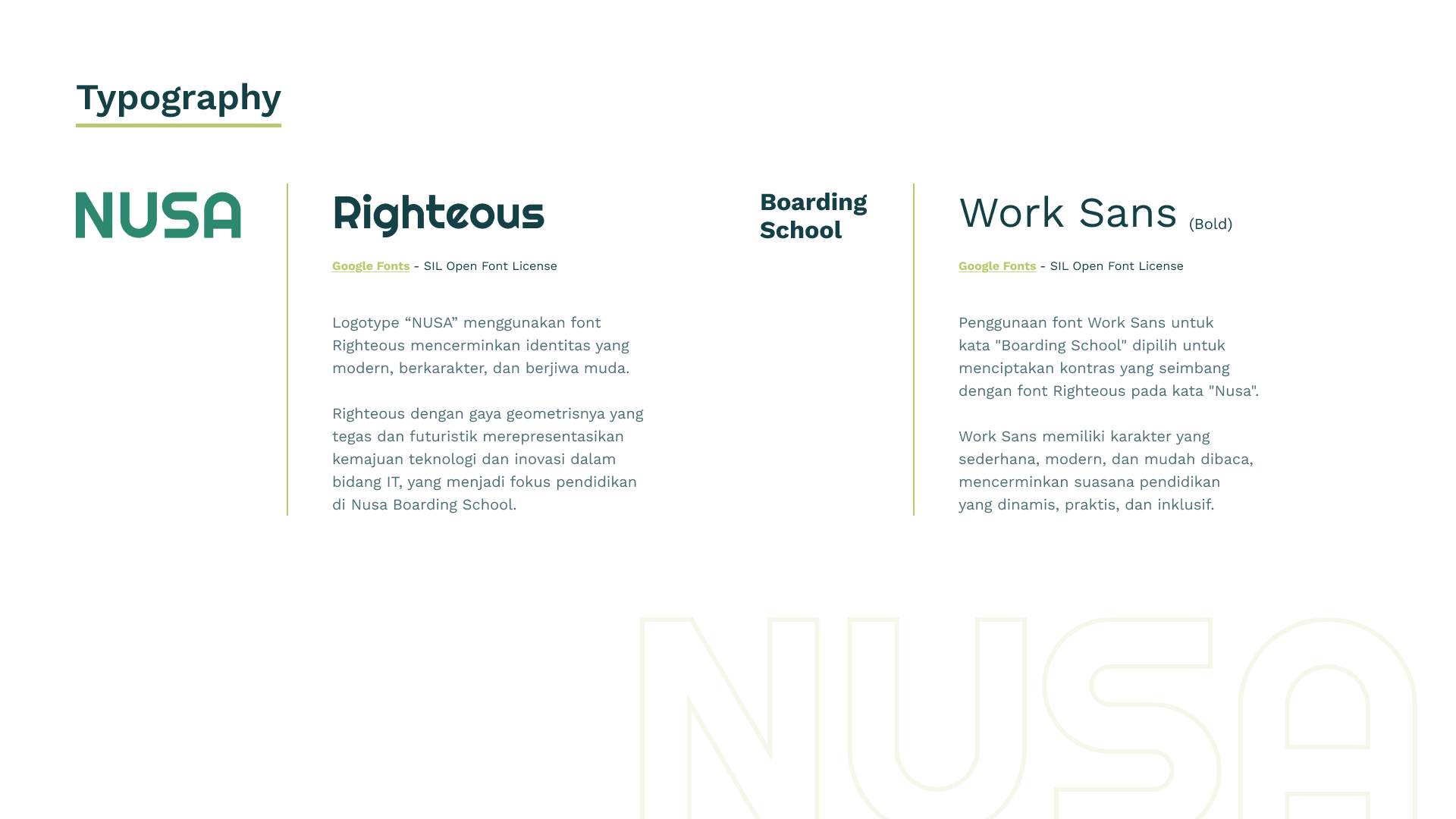NUSA Boarding School Logo Design Guideline